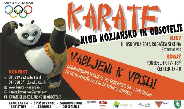 INFORMACIJE: karate.kozjansko@gmail.com ali FB: Karate klub Kozjansko in Obsotelje